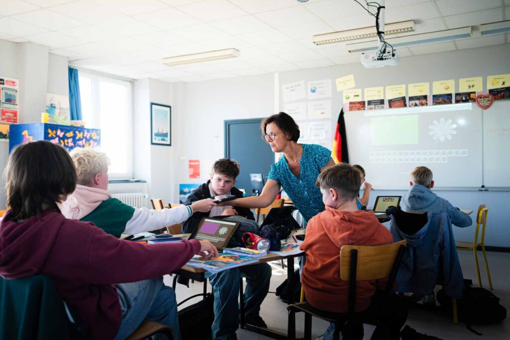 Depuis la 6ème, les élèves travaillent avec un iPad en classe et à la maison. Cet outil est un avantage sérieux pour les enseignants car il offre de multiples supports d’enseignement. Il permet aux élèves de devenir actifs et créatifs face au numérique plutôt que passifs et d’utiliser celui-ci à bon escient.