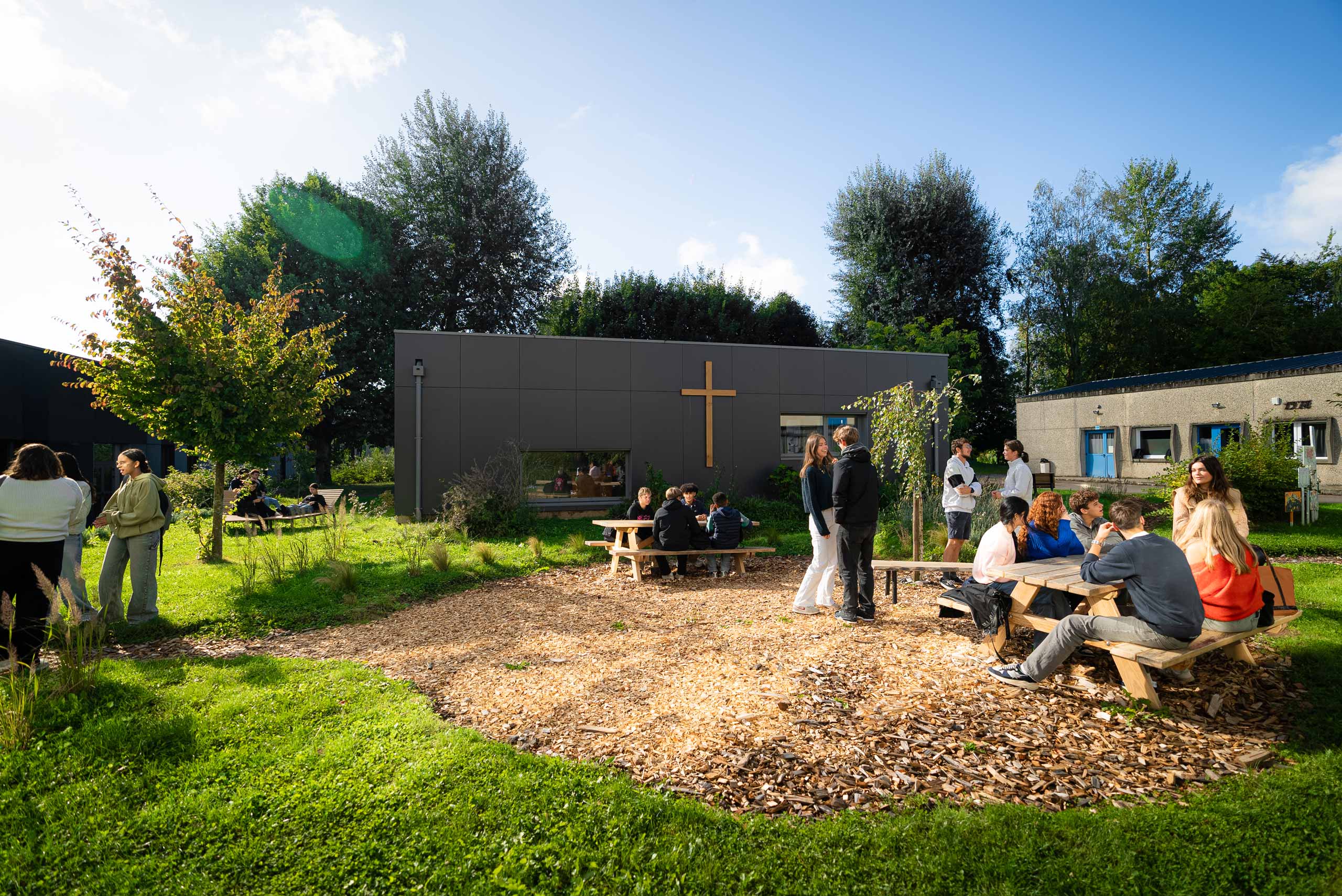 Un lycée unique, dans un cadre d’exception. Sainte-Marie se distingue par la richesse de ses infrastructures et un environnement verdoyant hors du commun. Les élèves évoluent chaque jour dans un cadre moderne, spacieux et inspirant, qui favorise aussi bien la concentration que les échanges, leur offrant un cadre rare et privilégié pour construire leur avenir.