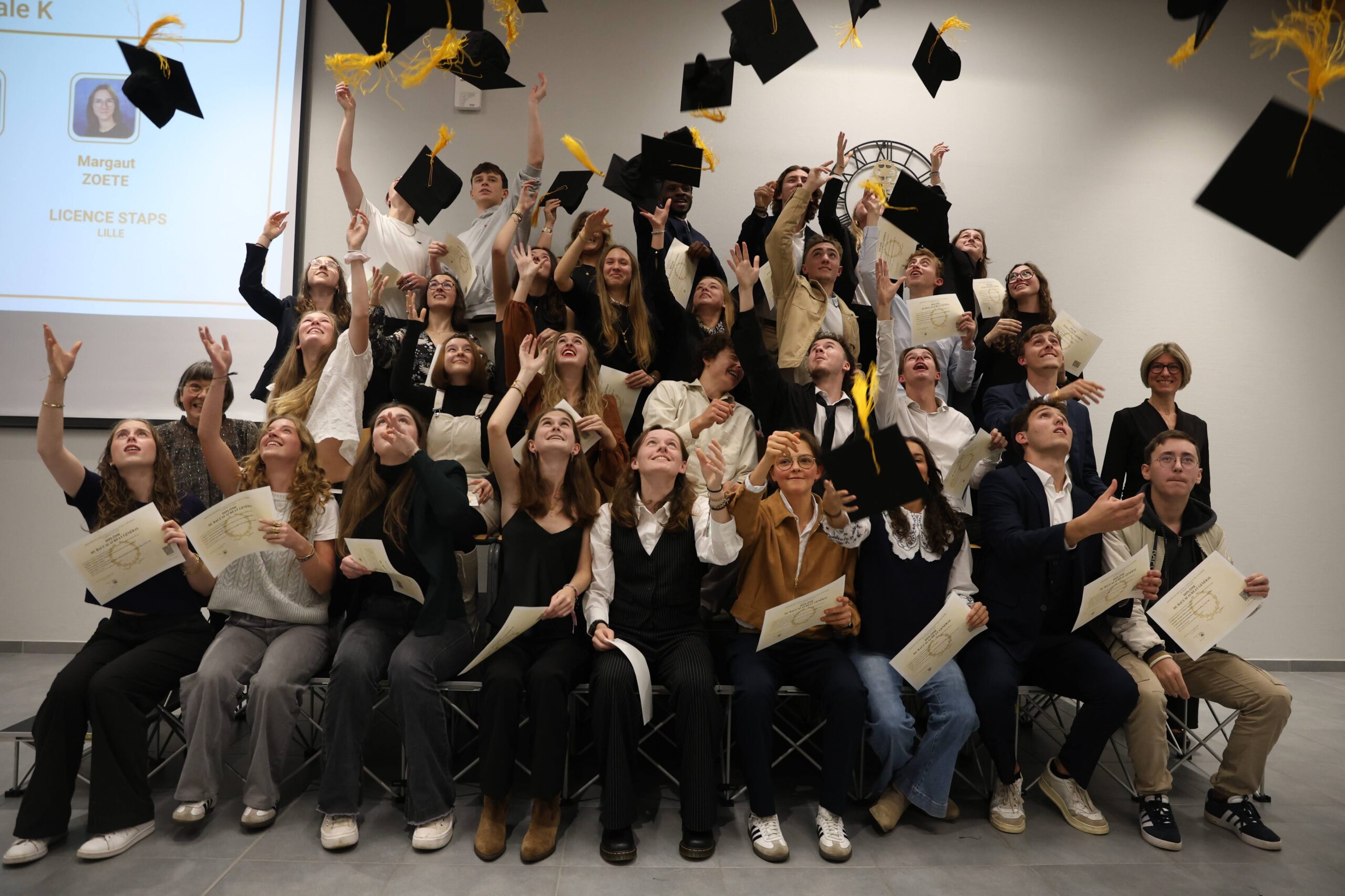 Beaucamps Sainte-Marie a eu le plaisir d’accueillir le 17 octobre les anciens élèves de la promotion 2024 pour la traditionnelle cérémonie de remise des diplômes du baccalauréat. Entourés de leurs familles, de leurs professeurs et de l’équipe éducative, les jeunes diplômés ont reçu leurs diplômes dans une ambiance chaleureuse et conviviale.